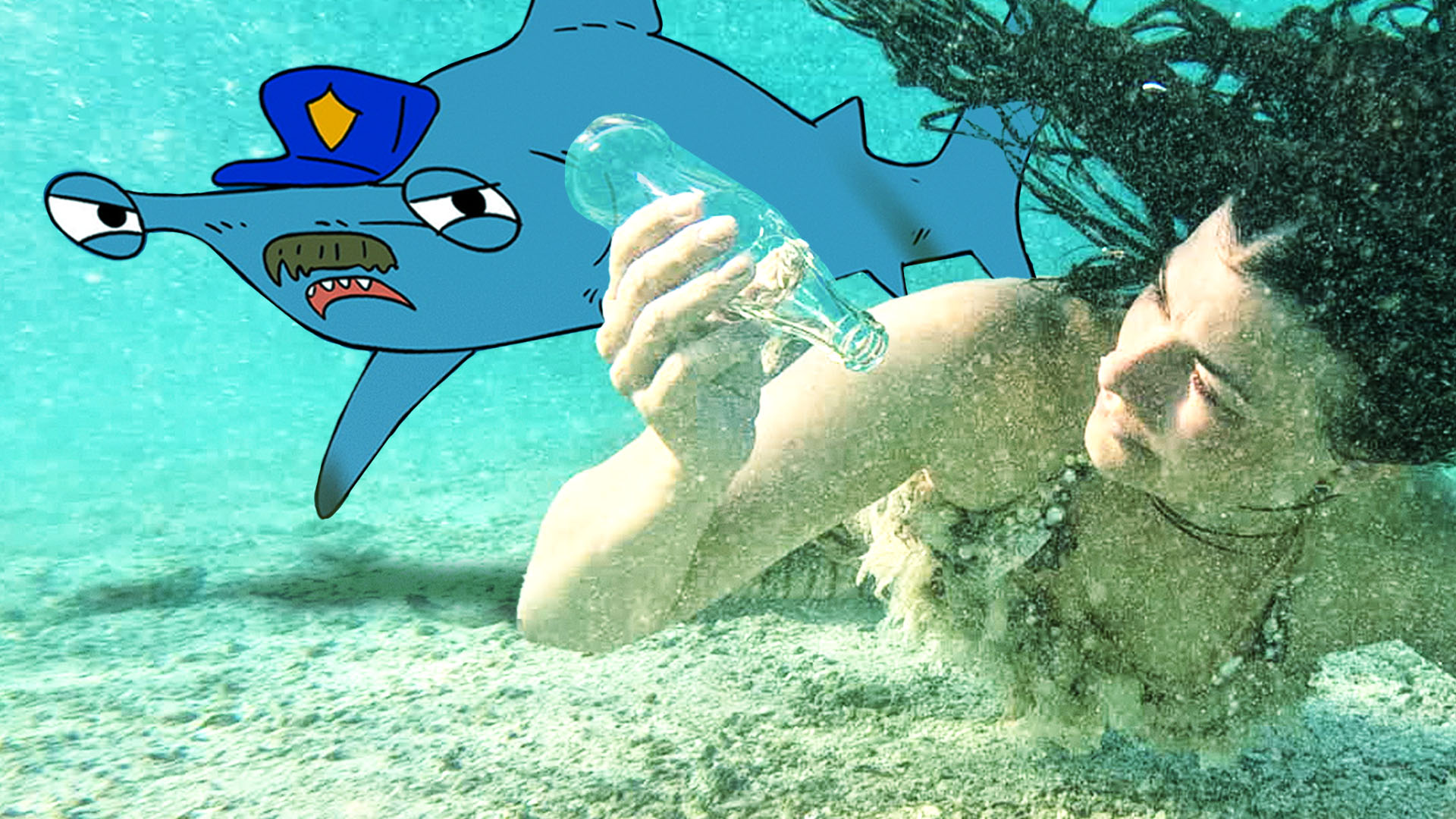 Modig renser stranden for skrald med en metaldetektor. Den minder havfruen om hammerhajen, der søger mad på næsten samme måde, og hun svømmer straks efter den.