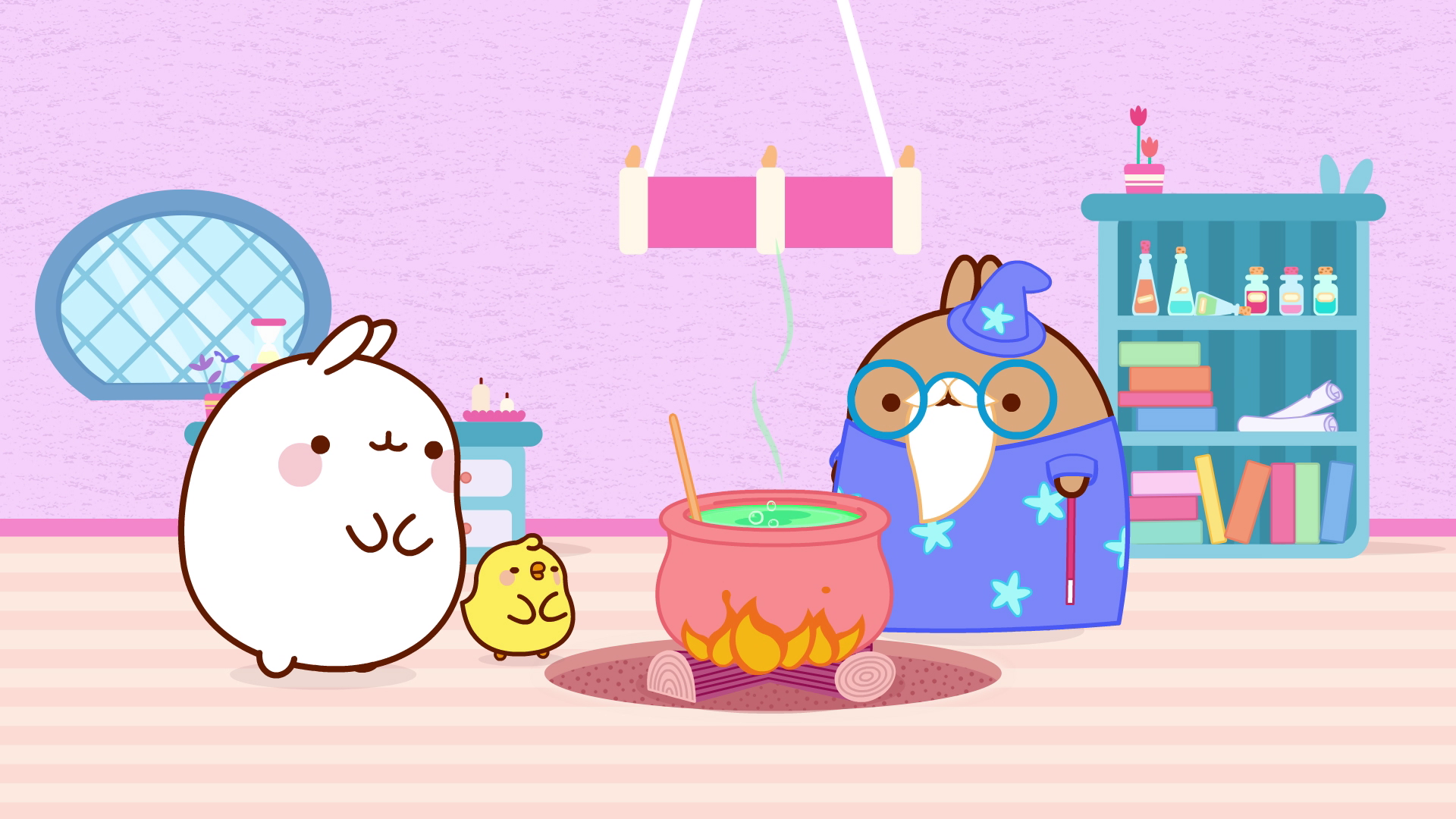 Molang og Piu Piu er Merlins lærlinge. Han går ind i skoven og forbyder dem at bruge tryllestaven. Kan de modstå tryllestavens tiltrækning?