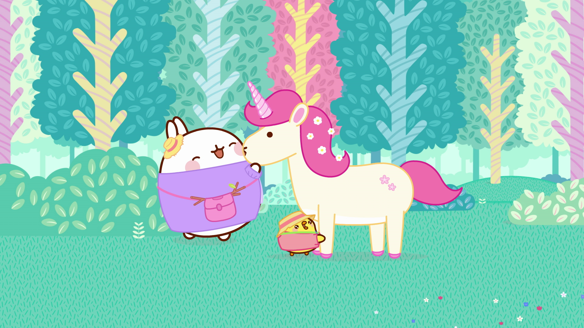 Molang og Piu Piu samler brænde til vinteren, da de møder en enhjørning, der er faret vild. Vennerne hjælper den tilbage til enhjørningenes legendariske land.