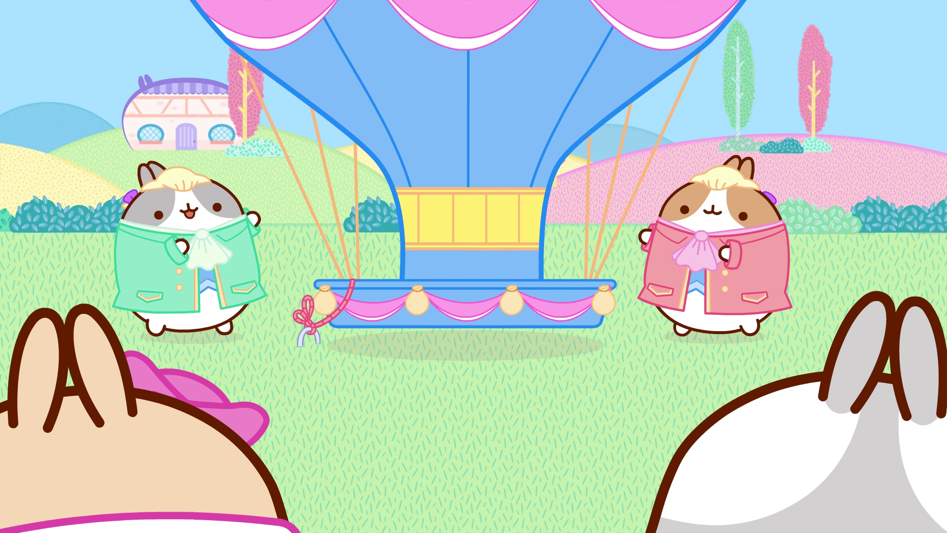 Molang og Piu Piu møder Montgolfier-brødrene, som desperat forsøger at finde en ven, der kan teste deres ballon. Alle deres venner nægter, undtagen Piu Piu, der