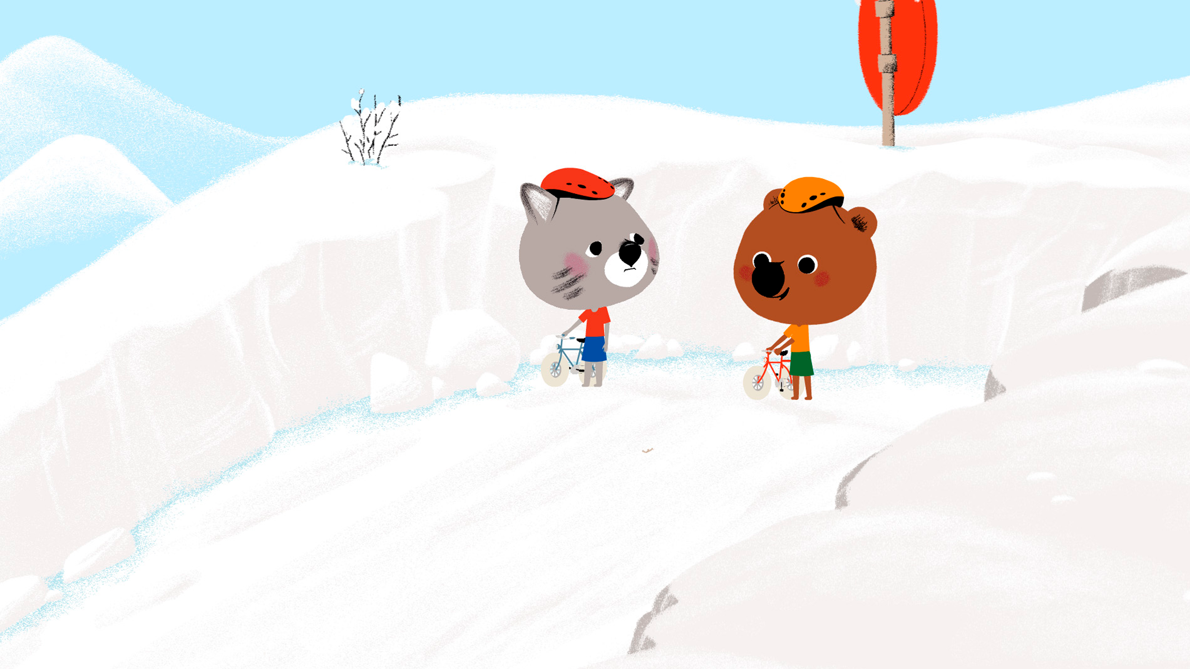 Mouk og Chavapa er i Andesbjergene. Mens de ordner nogle ærinder, kører bussen af sted med deres cykler fastgjort til den! Api vil hjælpe dem.