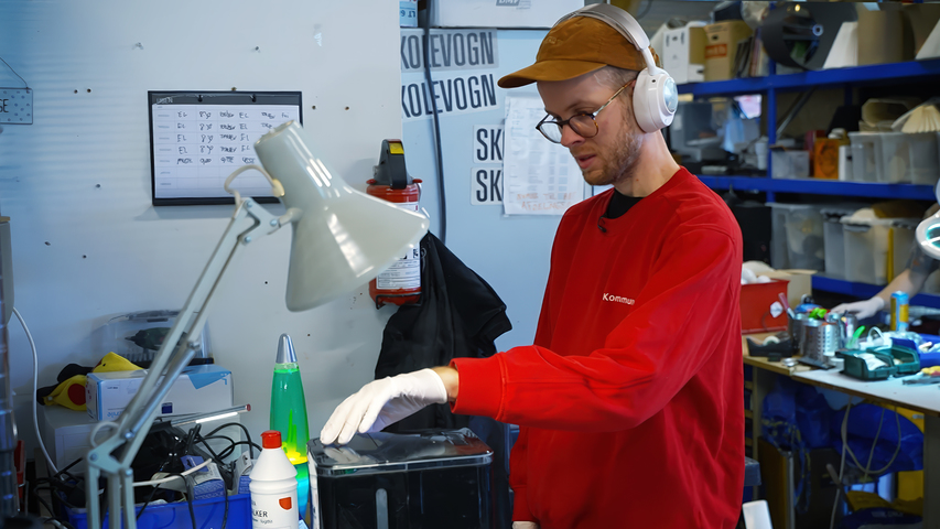 Vi går bag kulisserne i genbrugsbutikken KommuneKram i Holbæk, hvor Nikolai giver en brugt kaffemaskine lidt ekstra kærlighed.