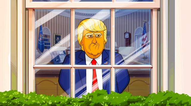 Med en todimensionel Donald Trump-avatar i hovedrollen i følgeskab med sit lalleglade følge af medarbejdere og familie, præsenterer denne knivskarpe komedie et næsten-sandt eventyr om Trump, hans fortrolige og hans bonkammerater.