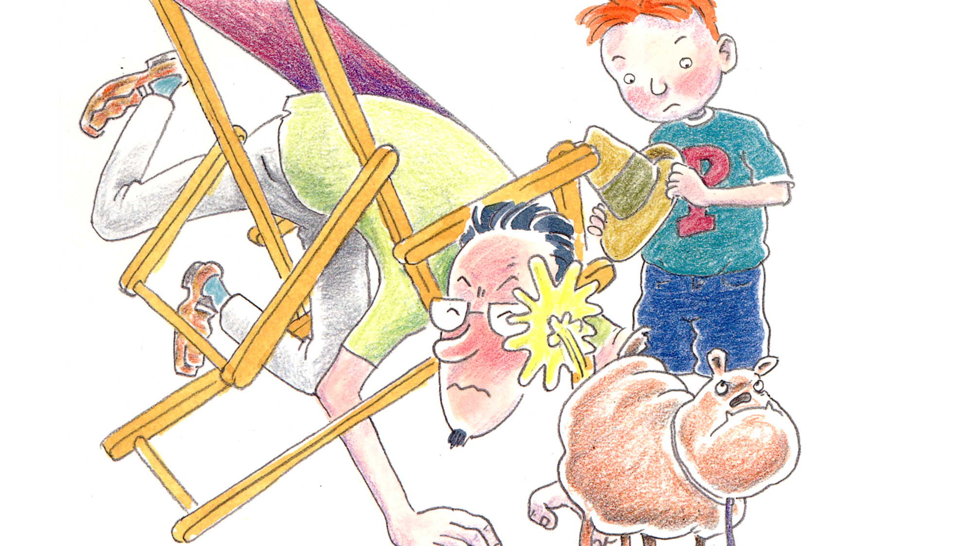 Palles far har købt en liggestol. Da han slår den op, bliver han viklet ind i den. Palle kan ikke få ham ud. Måske kan lægen hjælpe? .