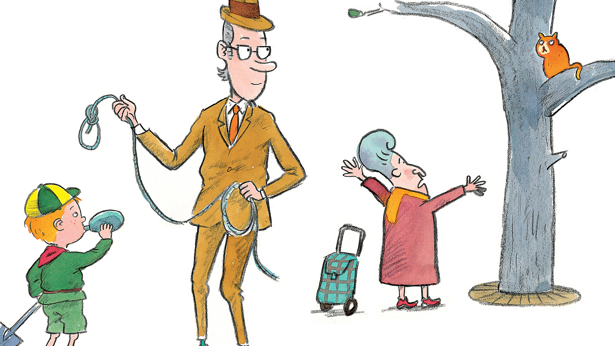 På vej hjem fra spejder møder Palle og hans far en ældre dame, som ikke kan få sin kat ned fra et træ. Det er lige en sag for en ægte spejder.