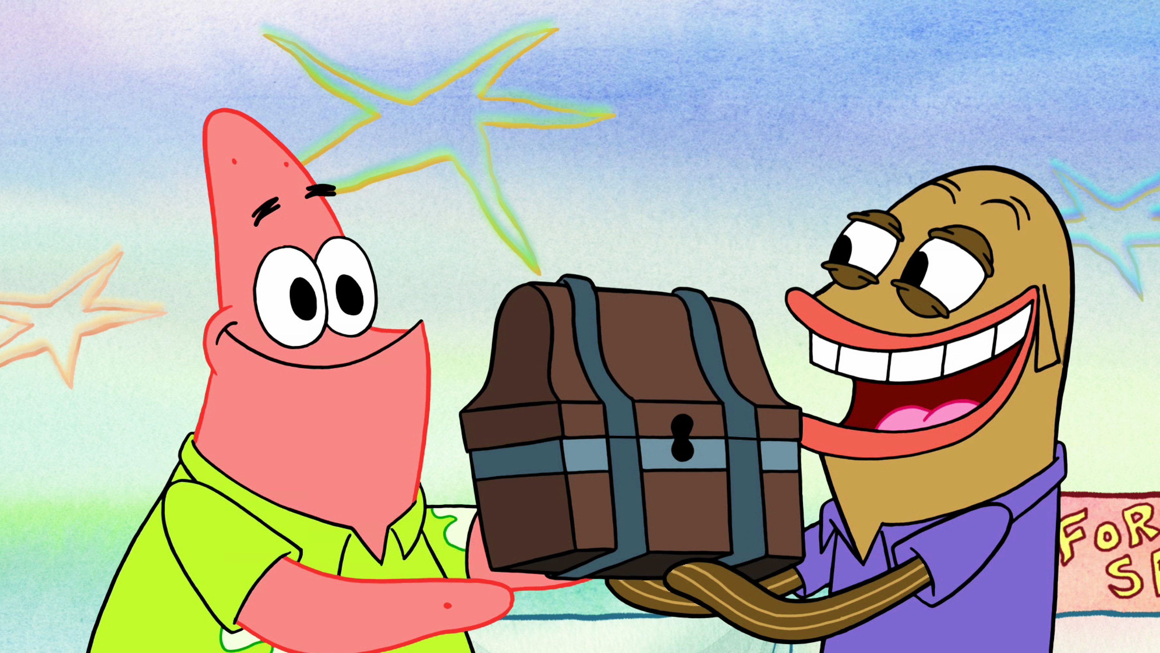 Patrick præsenterer et madshow. Han oplever arbejdsstyrkens vidundere med SvampeBob
