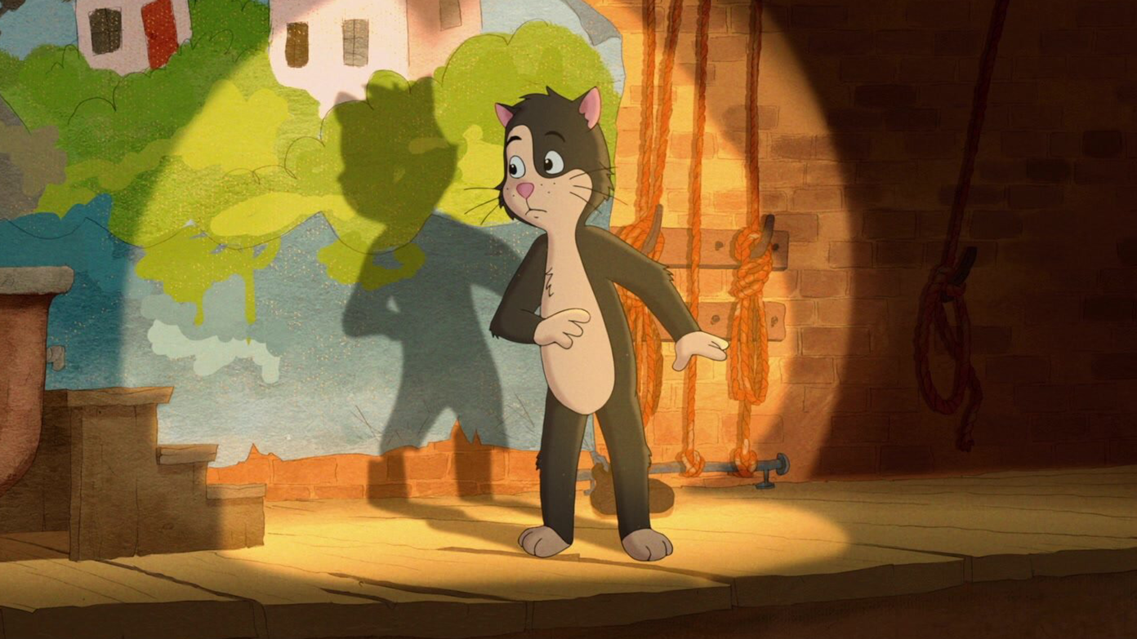 Den søde kattekilling Pelle Haleløs lever et sjovt liv på landet. Under et voldsomt uvejr falder han ned i en å, som fører ham til en fremmede by.