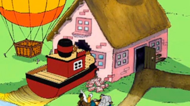 Pelle ordner skibet Marys motor, så hun kan sejle stærkt. Meget stærkt! Så stærkt, at vennerne kommer til at ødelægge både de to grises båd og Niels' hus!