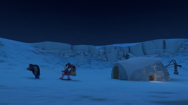Vennerne besøger Emil på Nordpolen. Det er hans arbejde at smøre Jordens poler.