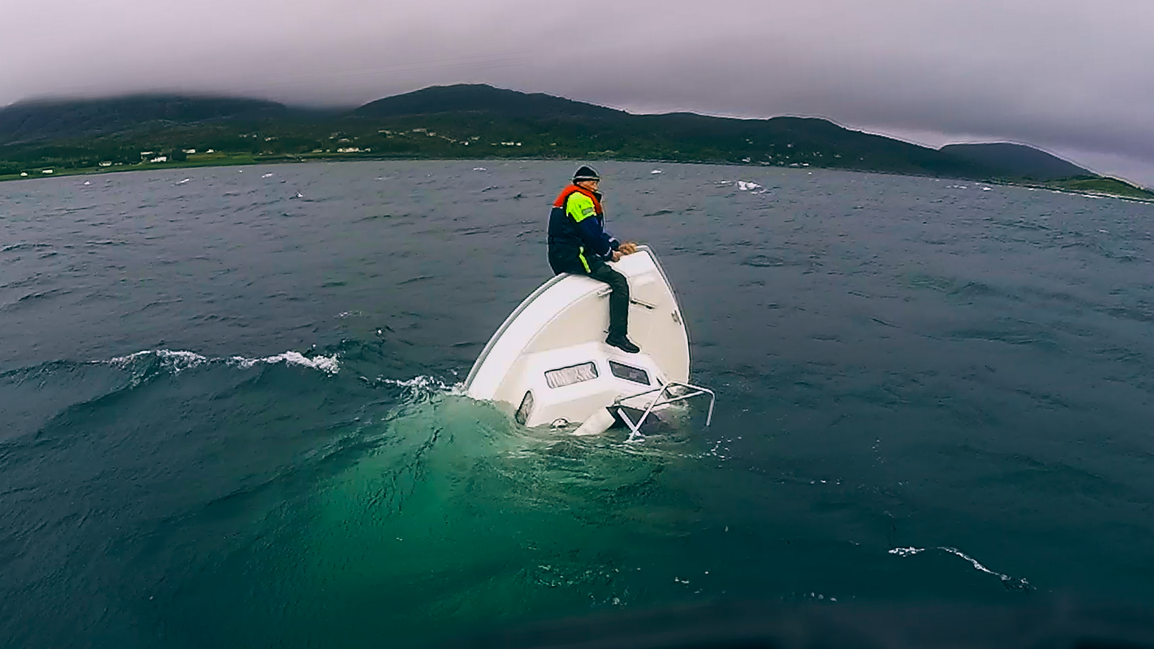 Sturla på 81 år er på fisketur i fjorden, da hans båd pludselig tager vand ind. Han ringer efter hjælp, mens han klamrer sig til skroget.