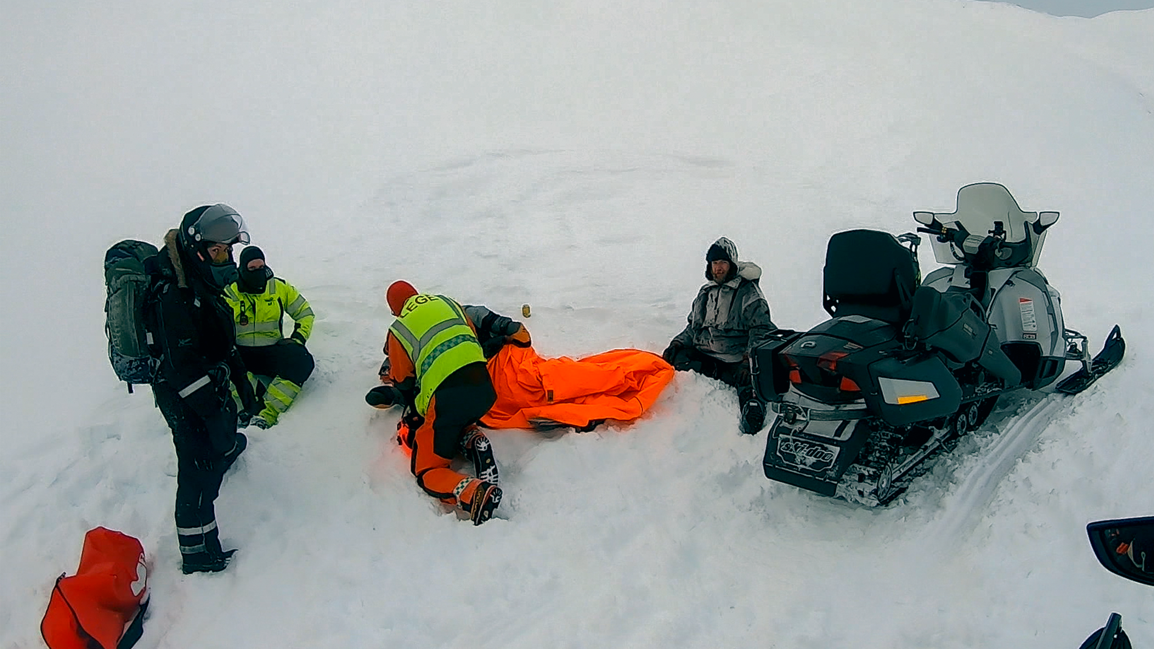 Benedikt er på udflugt på Svalbard, da snescooteren vælter ned på hans fod. Så redningshelikopteren må tilkaldes.
