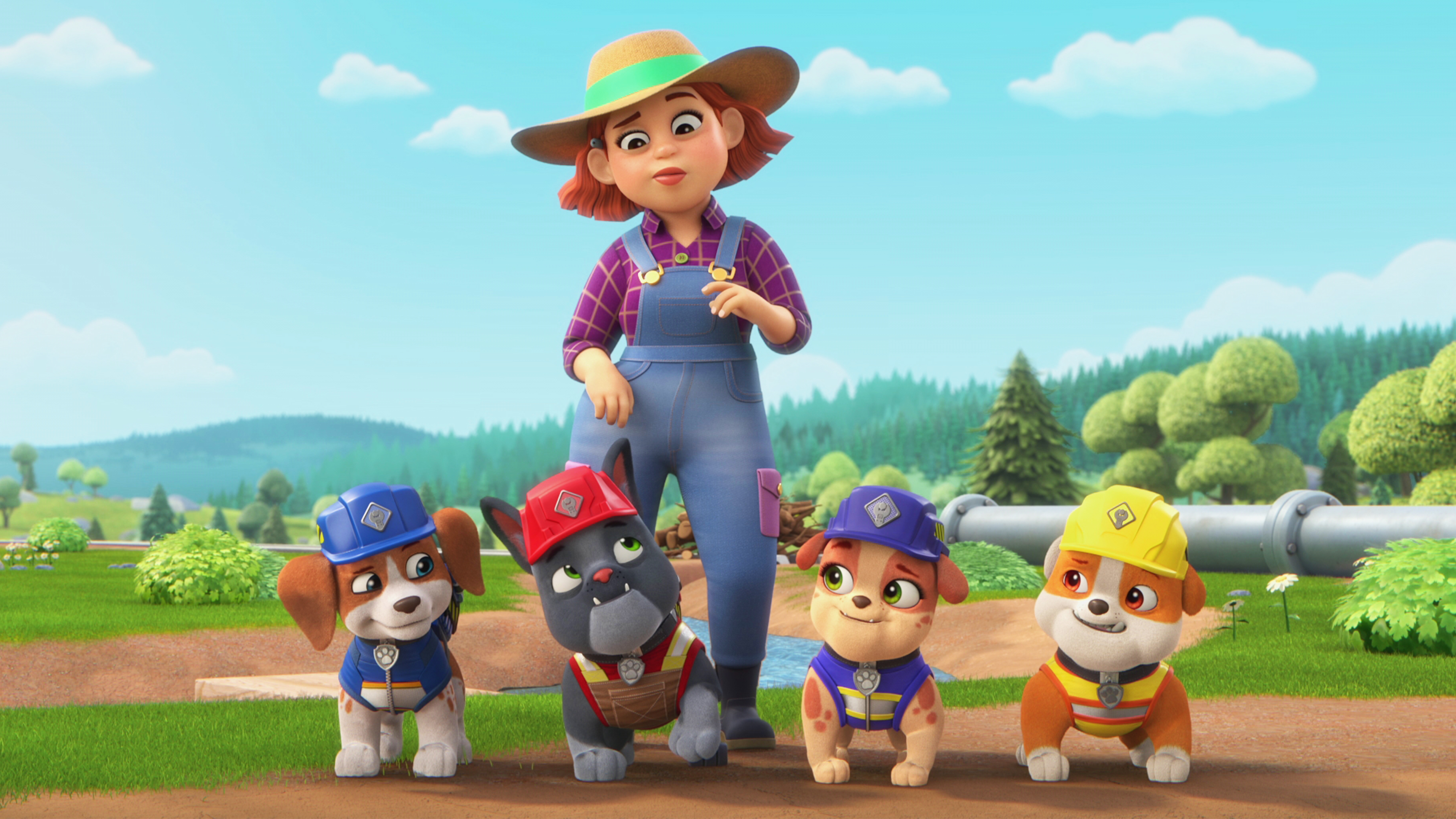 Hvalpene bygger en stald til en ny bondes grisefest. De finder også ud af, at byens lufthavn må have en bredere landingsbane