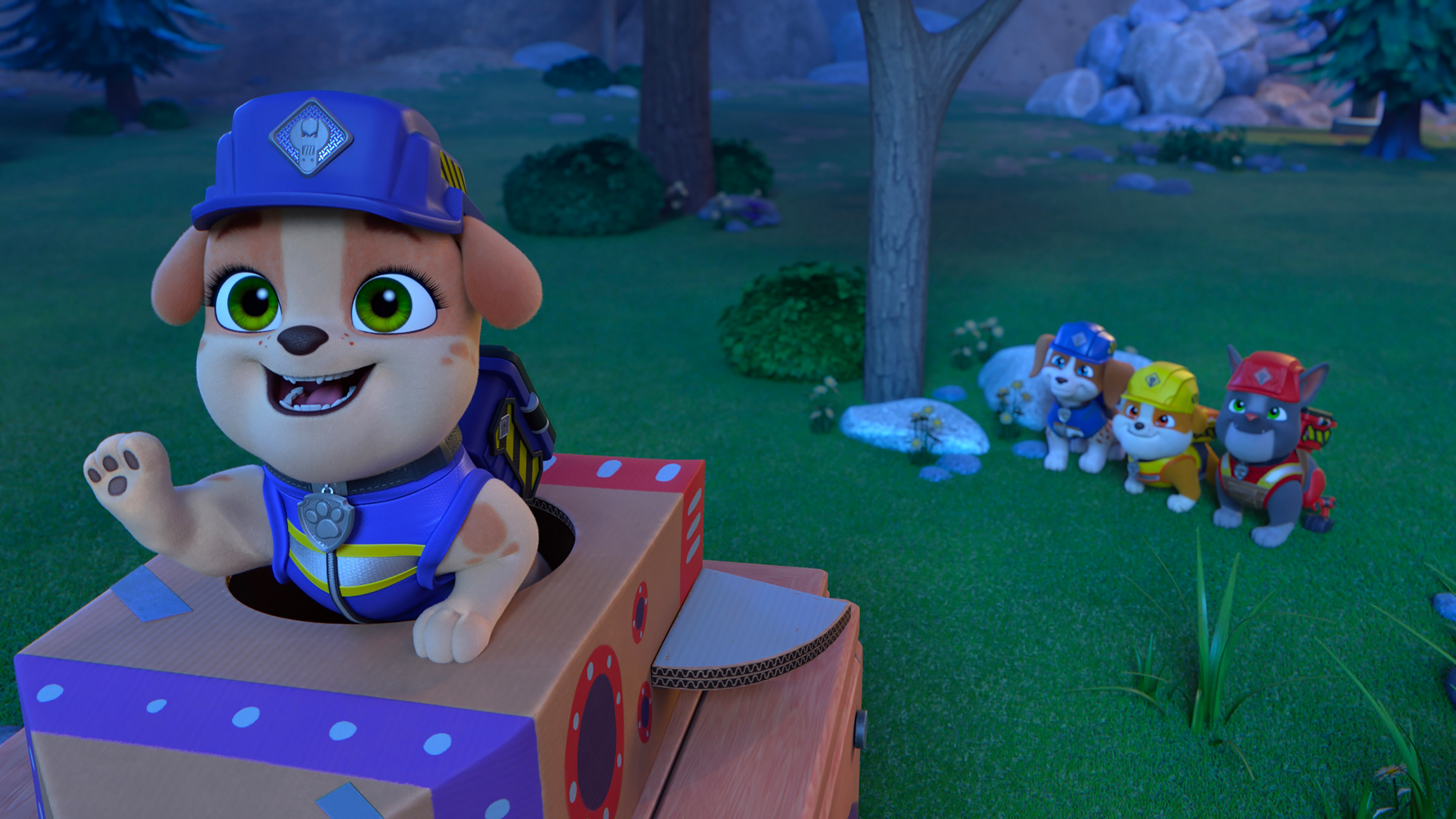 Byggehvalpen Rubble og hans dygtige familie arbejder sammen om at restaurere deres by, Builder Cove, og sikre den mod den skurkagtige Speed Meisters skumle planer.