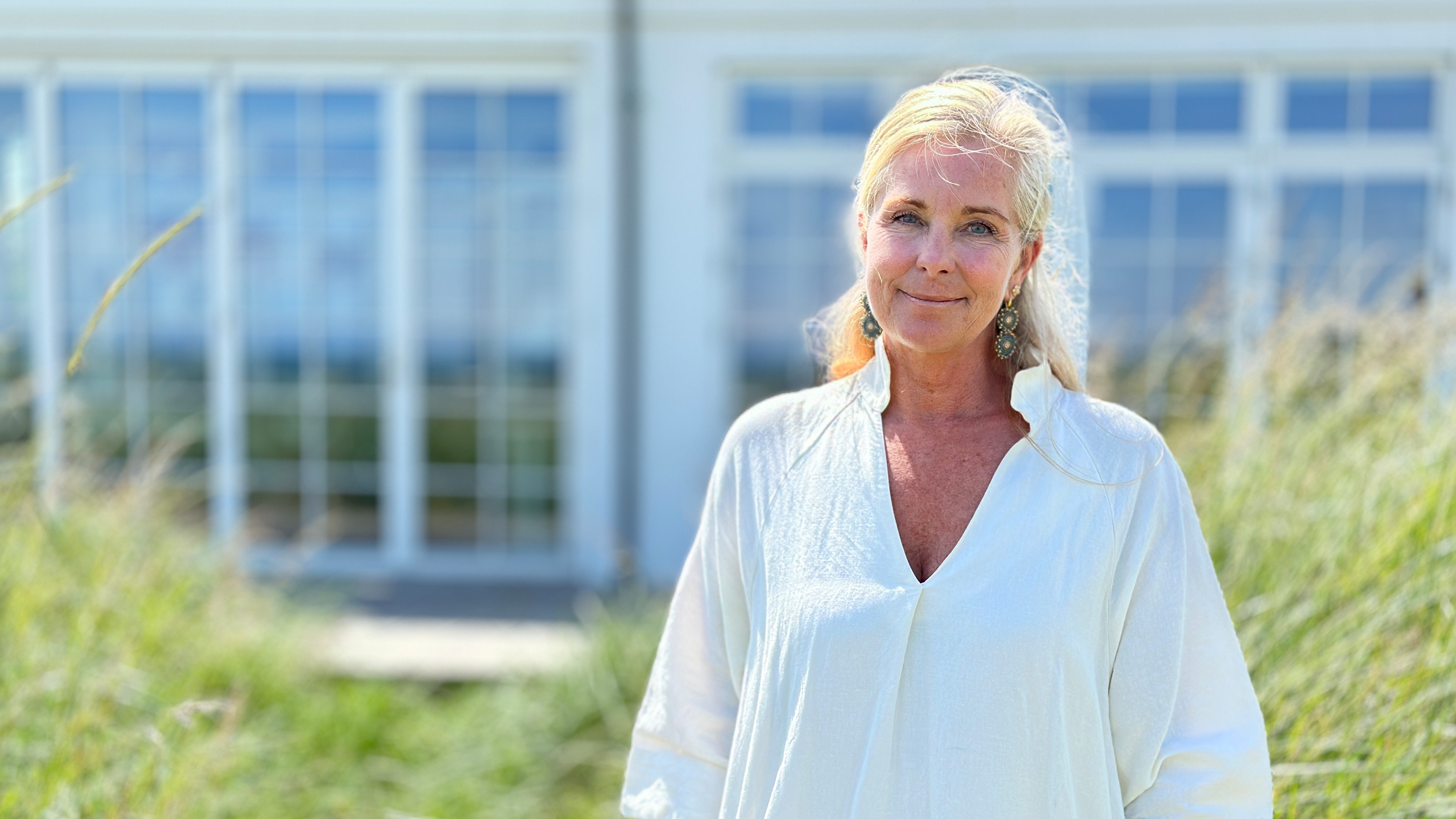 Tina Siels nybyggede villa på stranden er en oase af ro og romantik. Yndlingsfarverne er hvid og blå, og villaens indretning bærer præg af Tinas tid i Sverige.