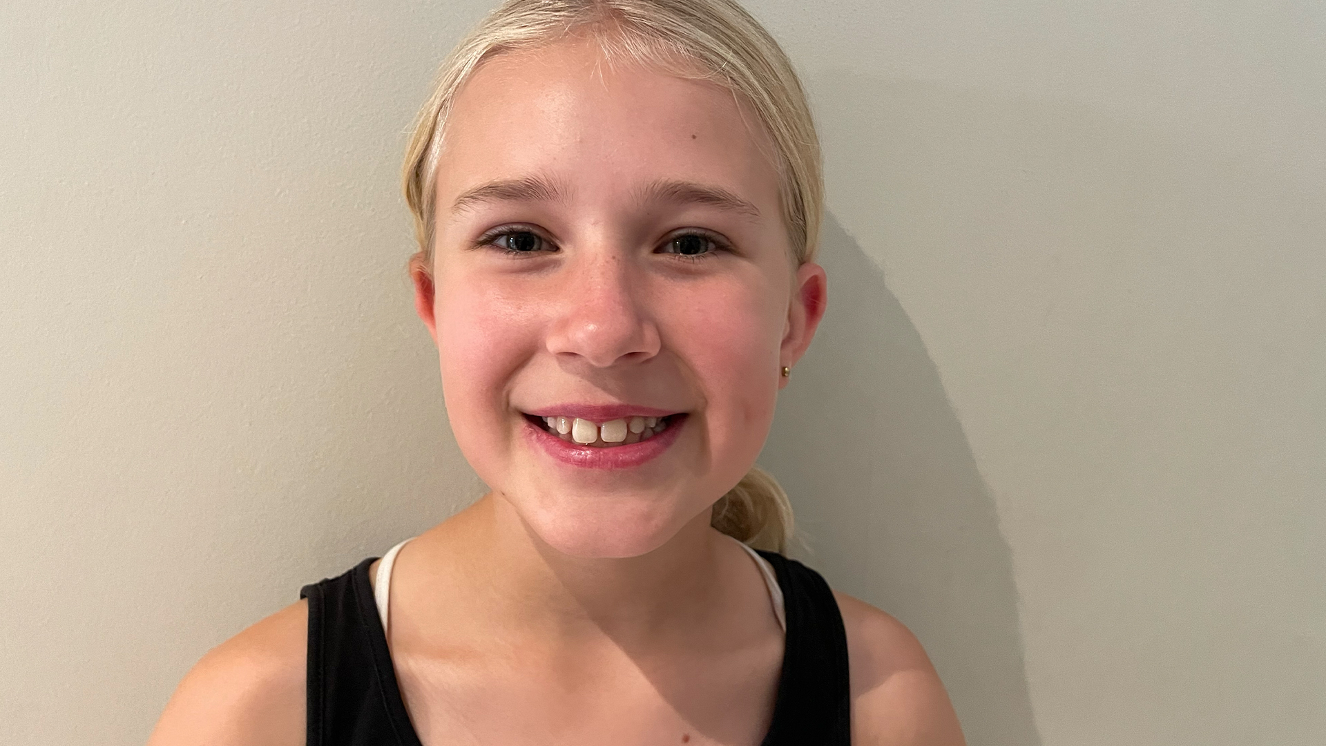 Hedvig på 8 år går til klatring. Hun har nogle seje klatresko, og når hun har dem på, kan hun klatre rigtig højt! I dag skal hun prøve 10-meter væggen!