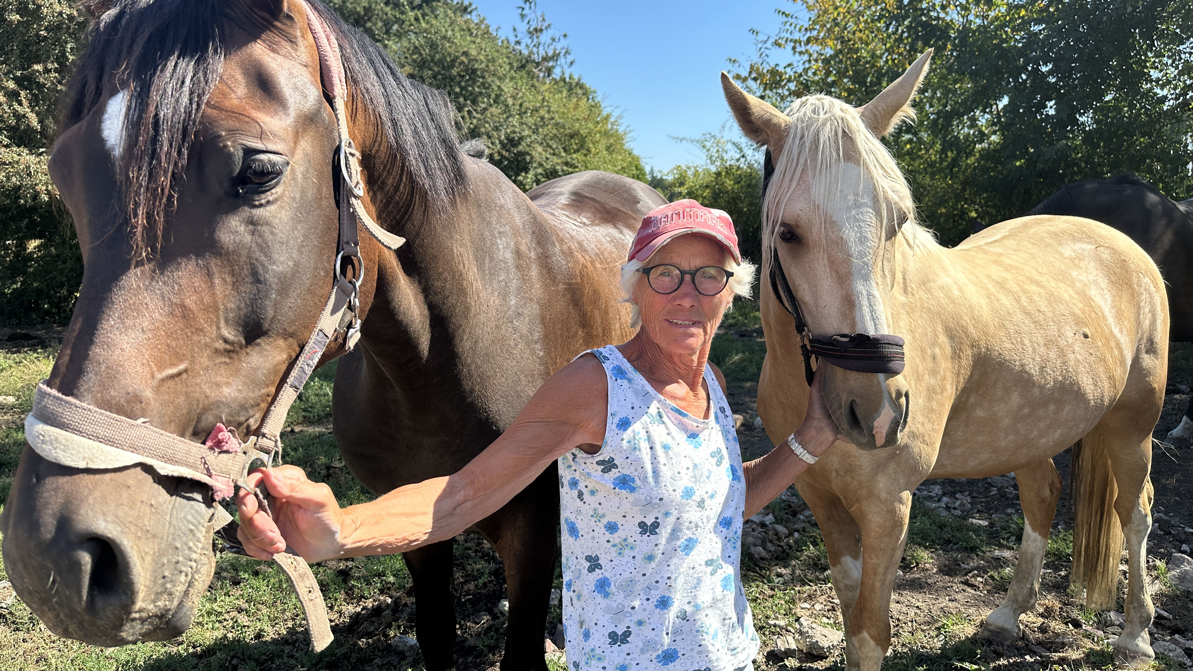 75-årige Grete Rømer, pensioneret sygeplejerske, holder sig i form ved at passe sine heste og haven på gården på Rønnevej.