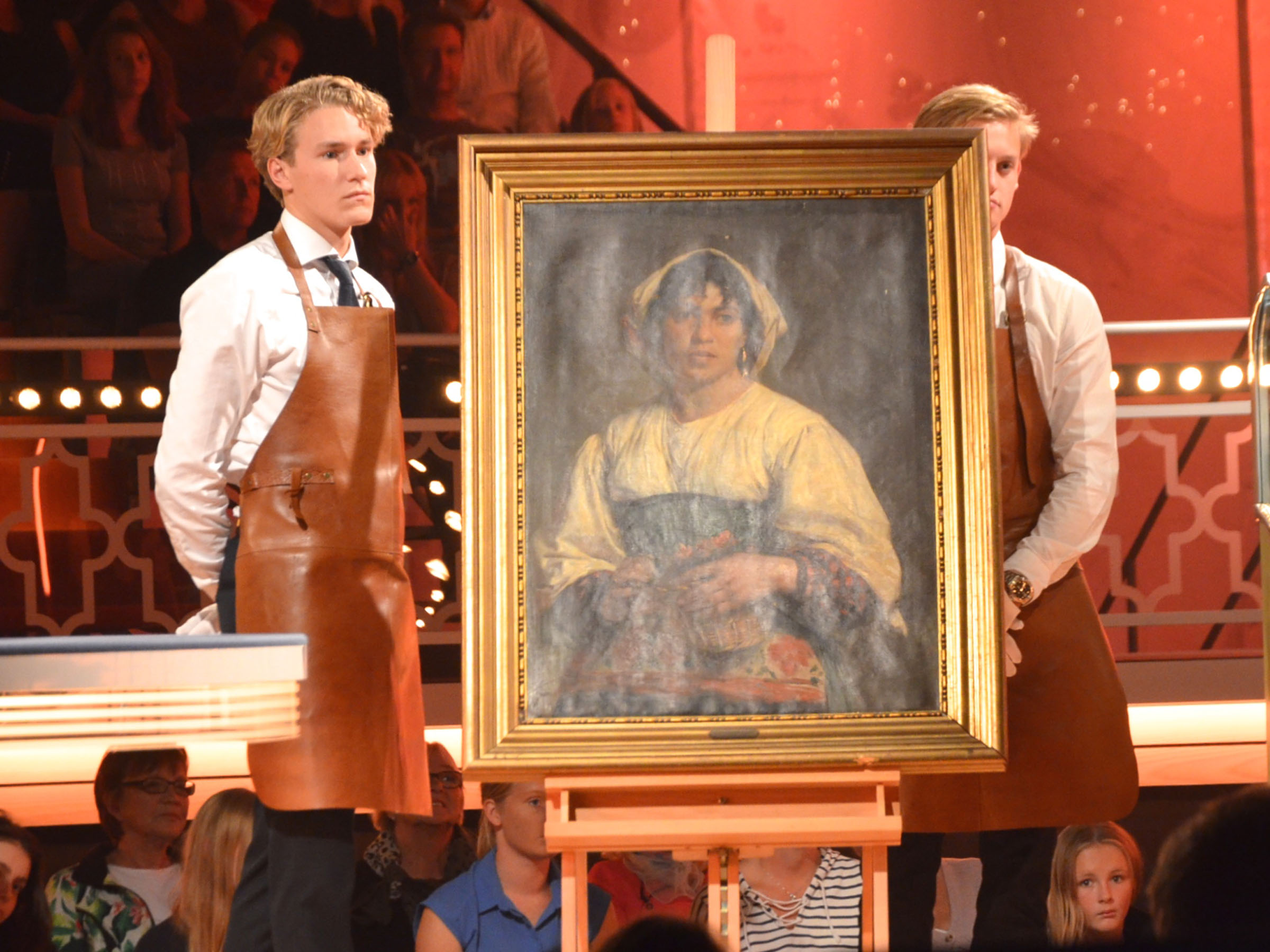 Otte antikviteter er på plads i studiet, men kun en af dem er en halv million kroner værd. Helena har taget sin datter Anna med.