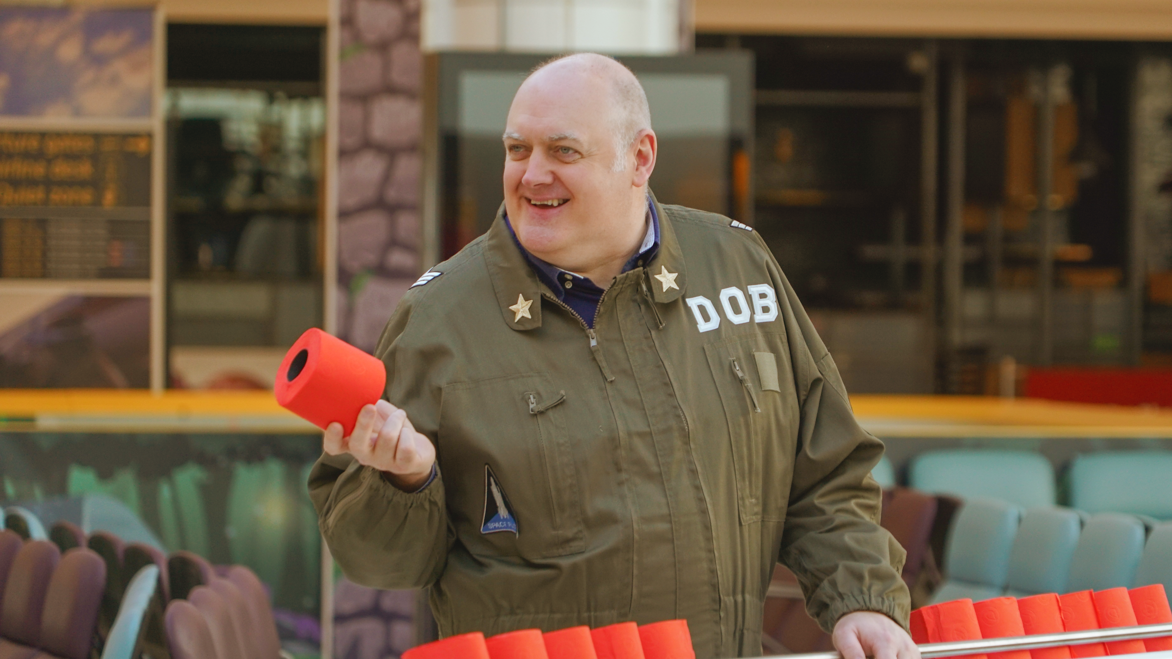 Ardal O’Hanlon kaster sig over en plantebaseret snack, Sophie Duker hælder væske gennem et gigantisk rør, og Chris Ramsey overvejer at spise tørret spaghetti.