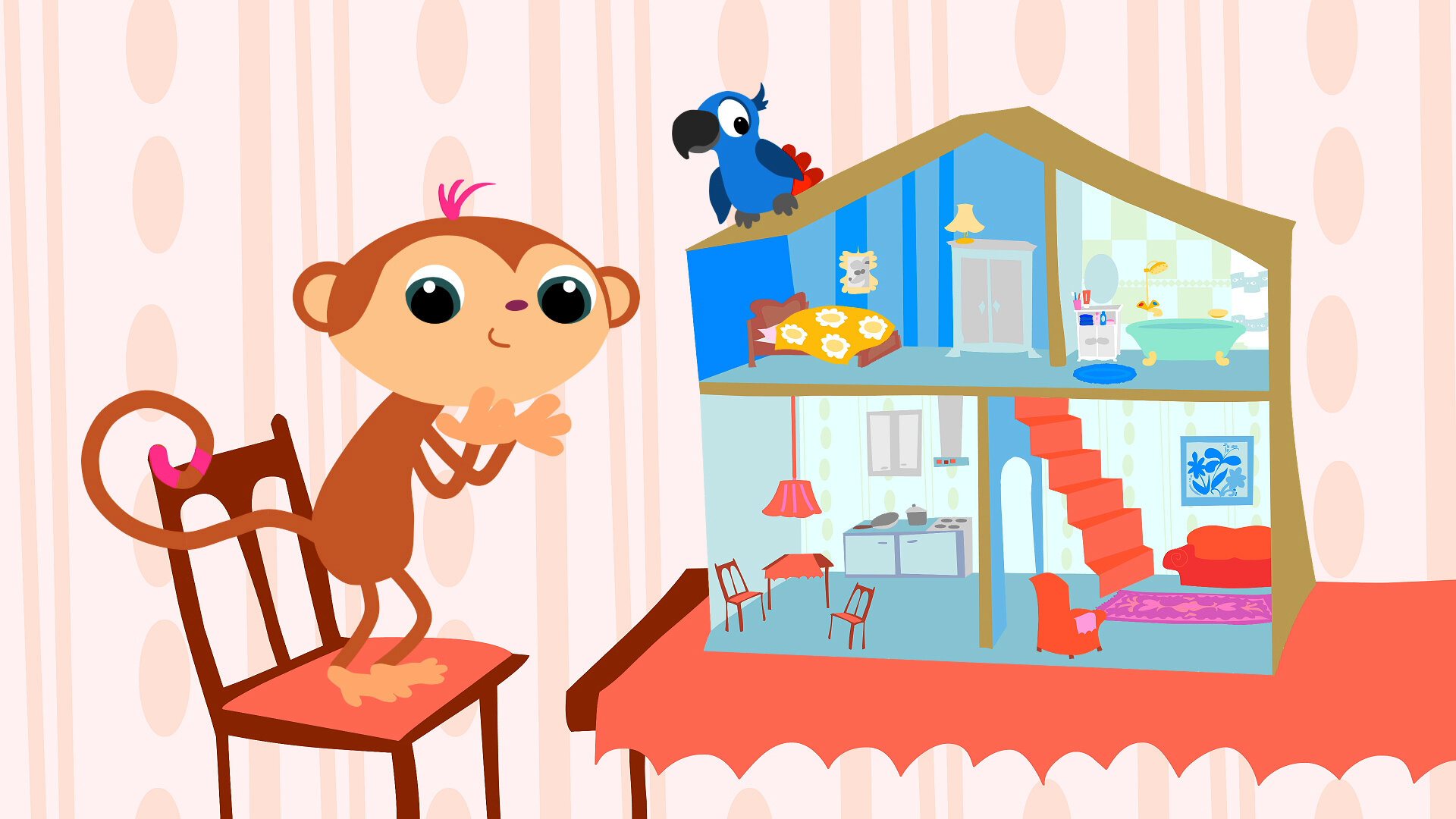 Animeret børneserie om aben Toby, papegøjen Pepper og Bjørnen Bax, der er tre sjove figurer, som lærer små børn engelsk på en sjov måde.