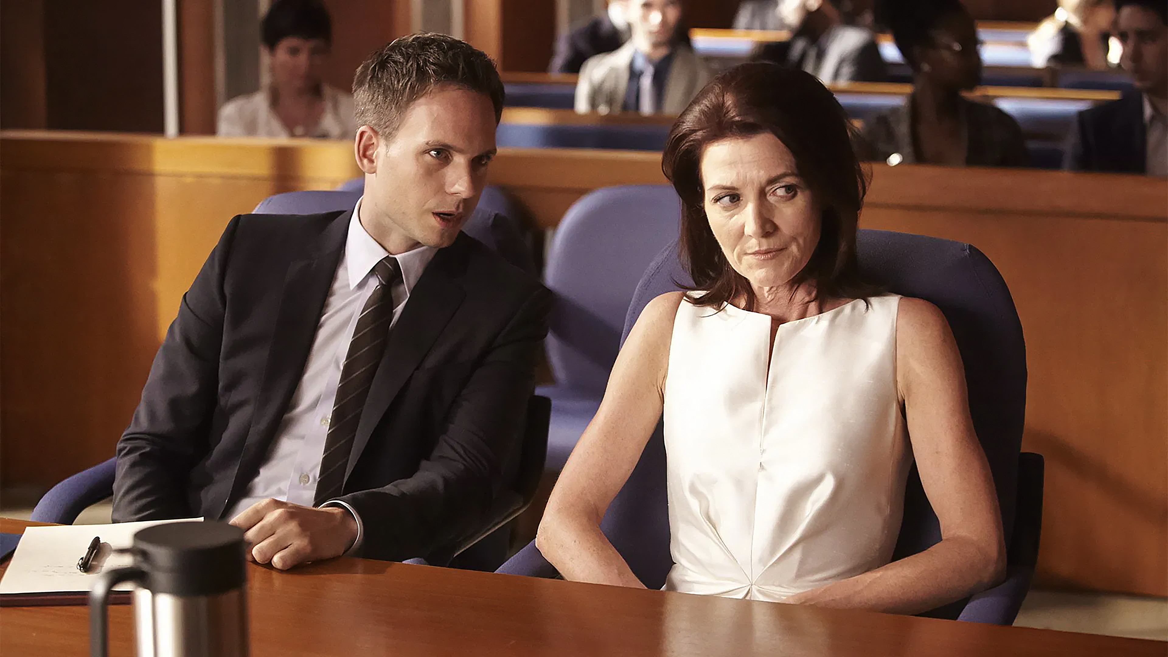 Harvey står ansigt til ansigt med Robert Zane, Rachels far, i en sag om kønsdiskrimination.