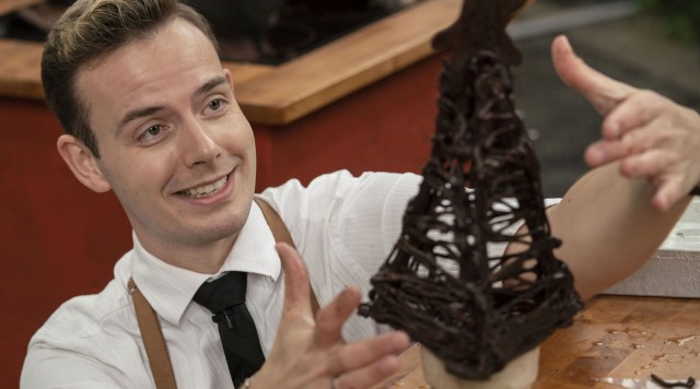 Chokoladejuletræer i 3D og spiselige pakker til dommerne. Presset er enormt på sukkerfabrikken, hvor feltet er halveret fra ti til fem deltagere.