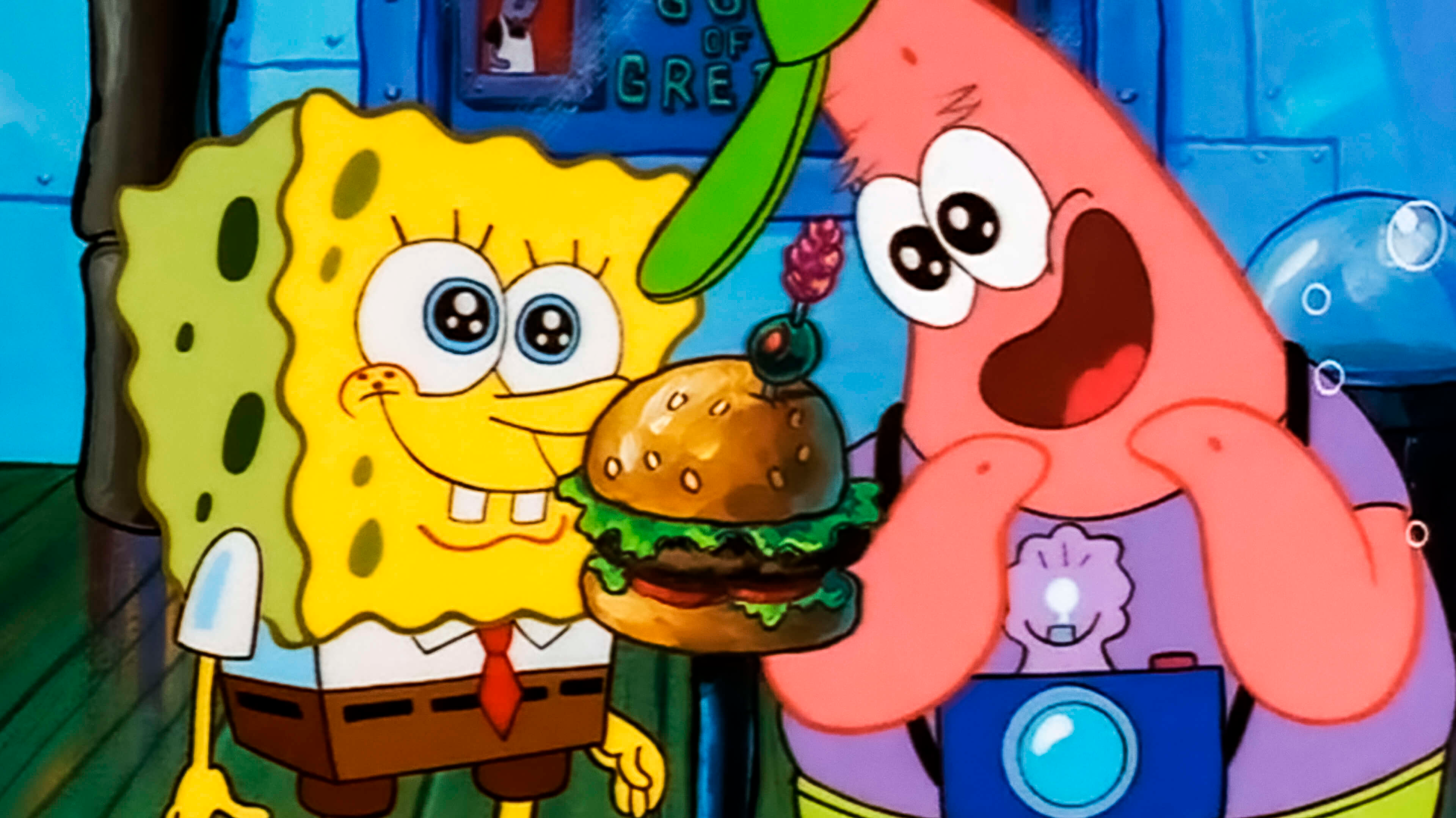Patrick gør SvampeBob til sit forbillede. SvampeBob blæser en boble for at være hans ven.