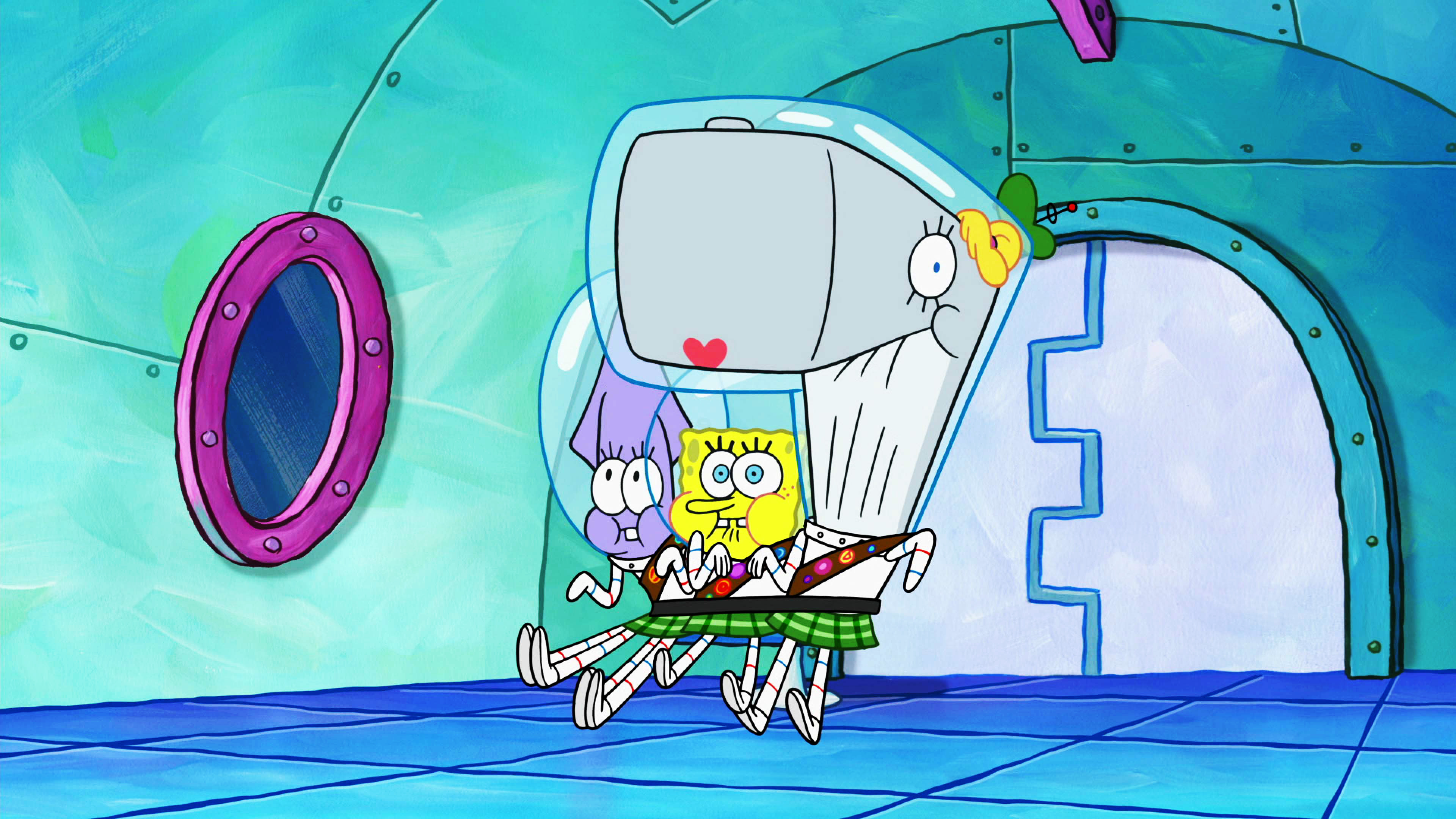 SvampeBob besøger Bobleby. Sandy inviterer Karen og Fru Puff til en aften i byen