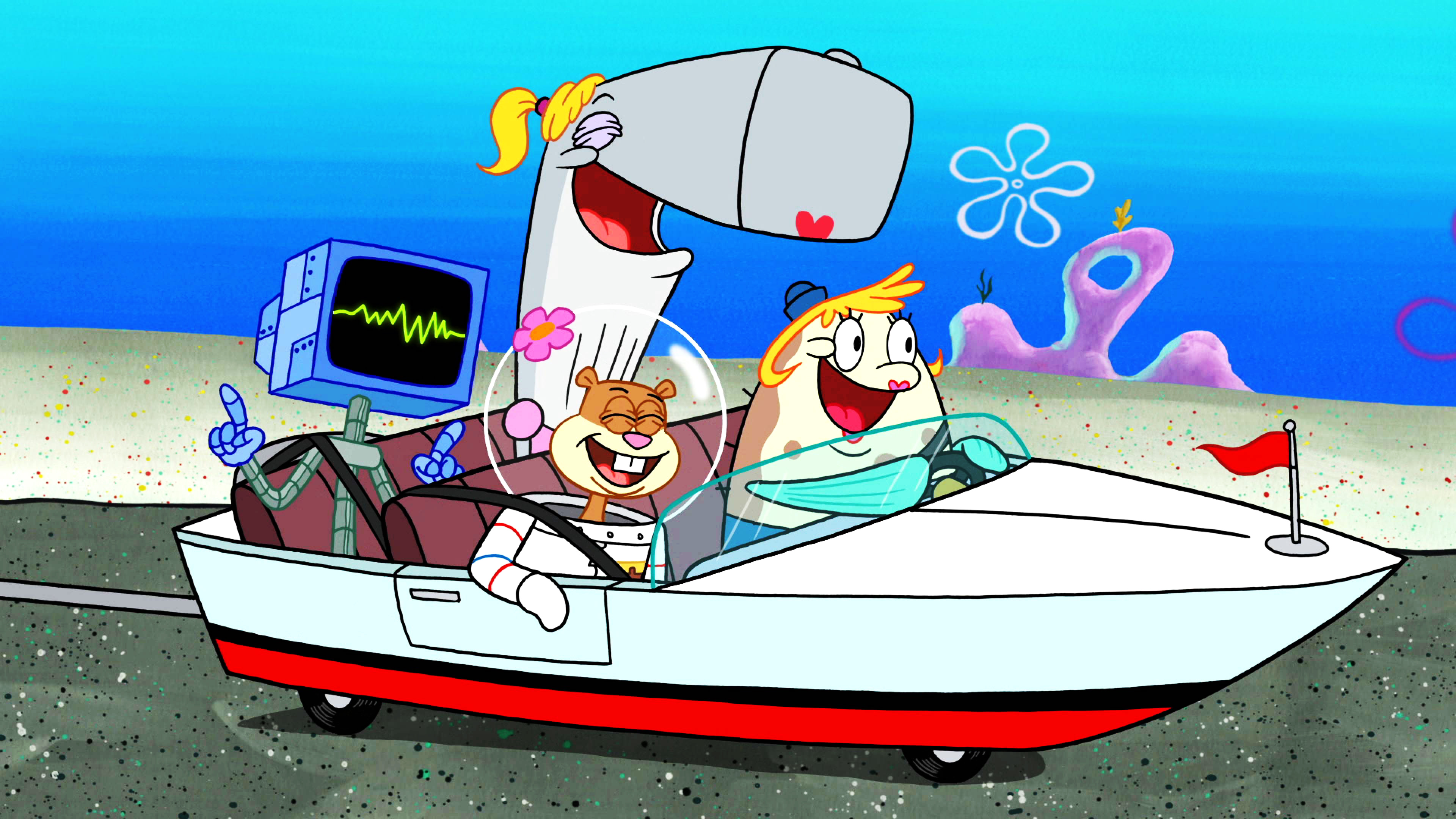 SvampeBob og Patrick kigger rundt i overfladen, mens Bikinibunden forbereder en overraskelse