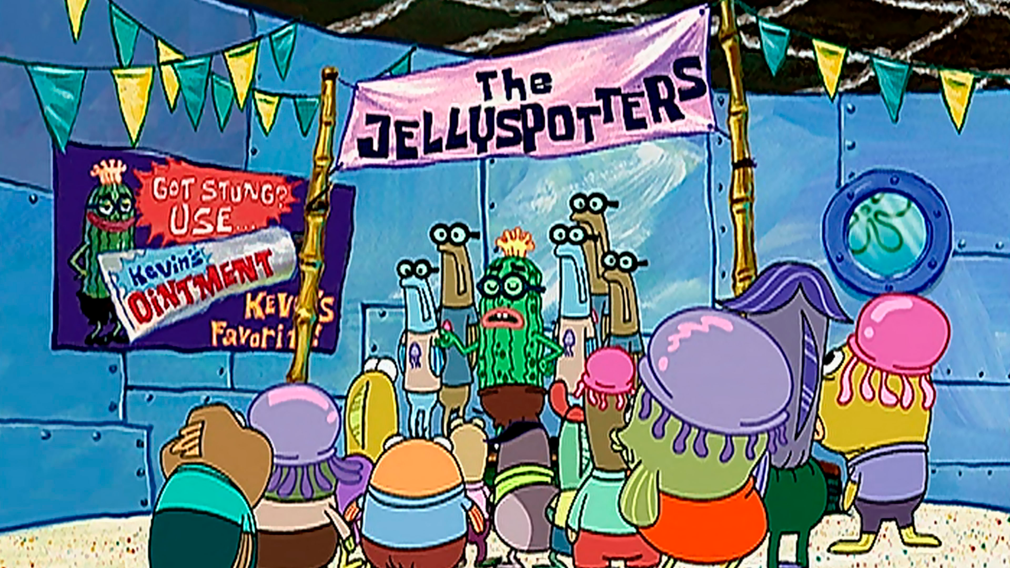 SvampeBob passer hus for Havfruemand og Klæbedreng. SvampeBob fortæller nedsættende vittigheder.