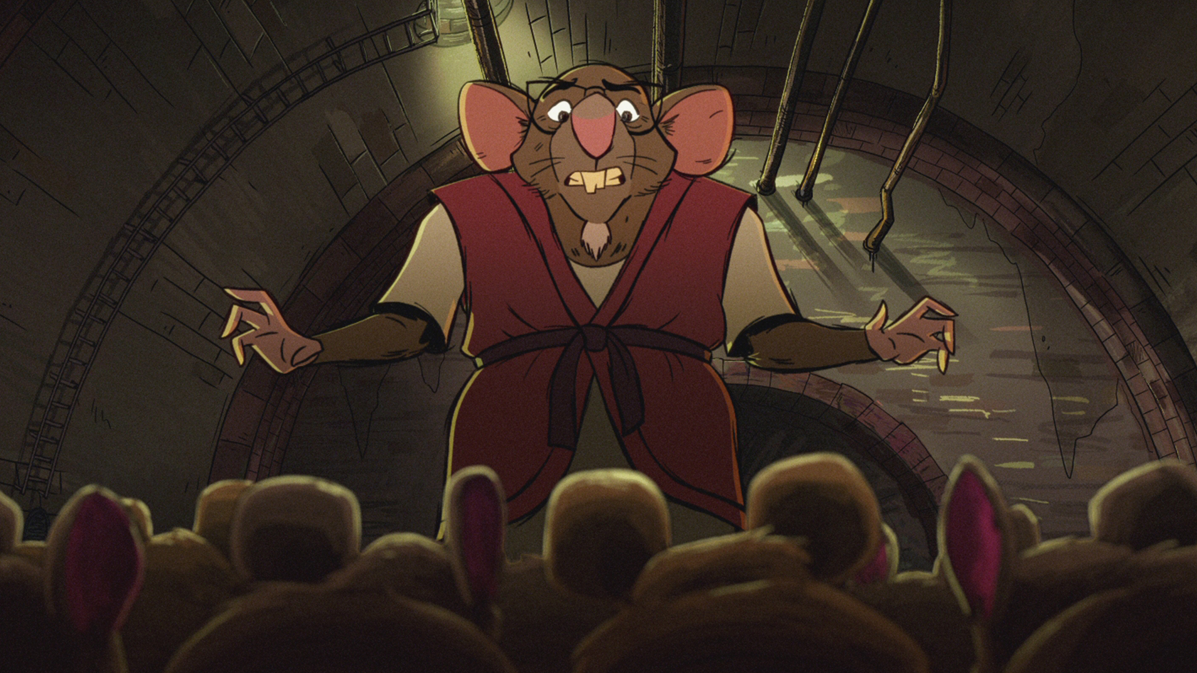 Da basen bliver oversvømmet, prøver April at redde Splinter, men han vil ikke forlade kloakken.