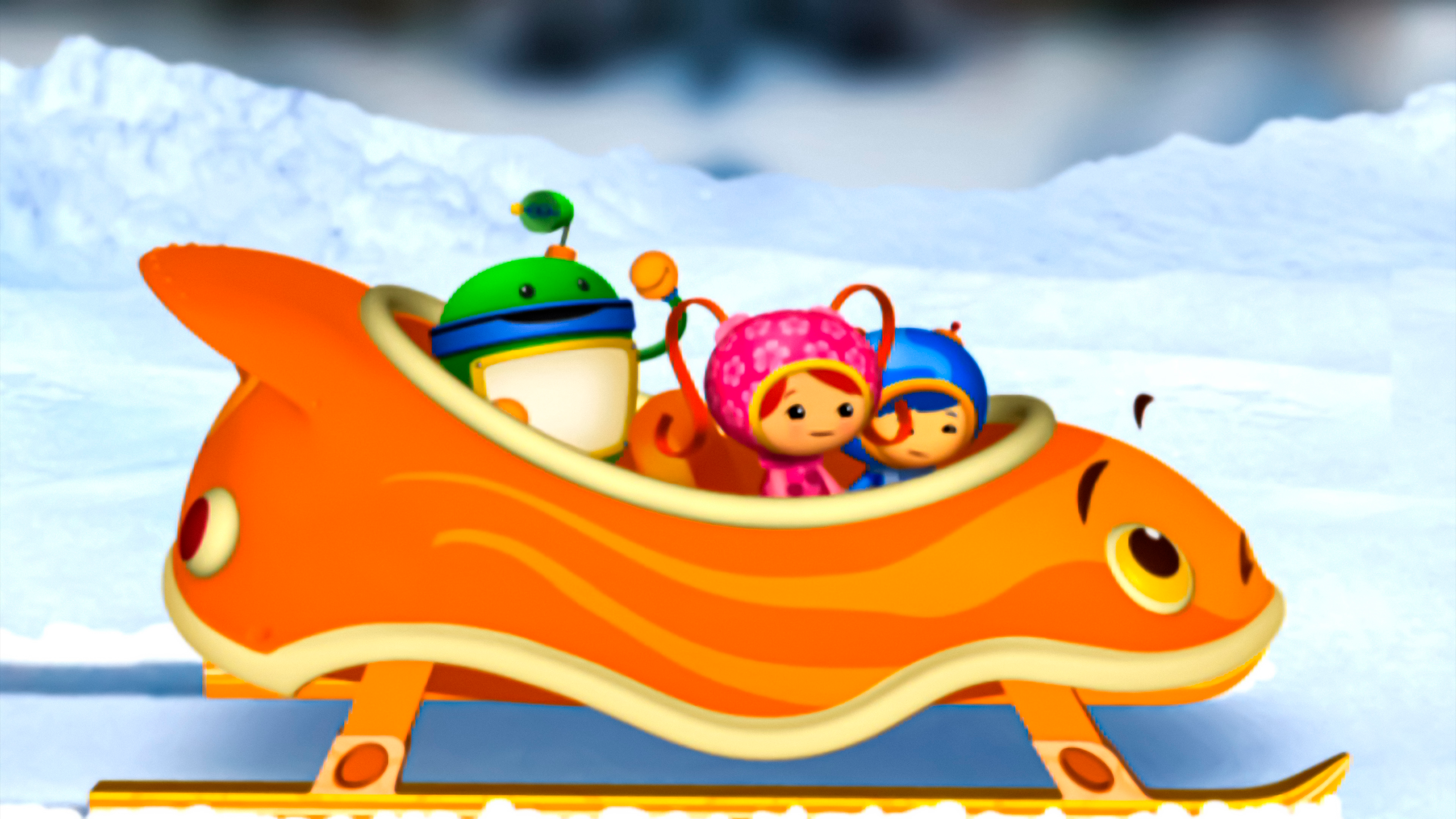 Team Umizoomi begiver sig ud på en snedækket rejse gennem Umi-byen for at bringe Sanjay en superslæde.