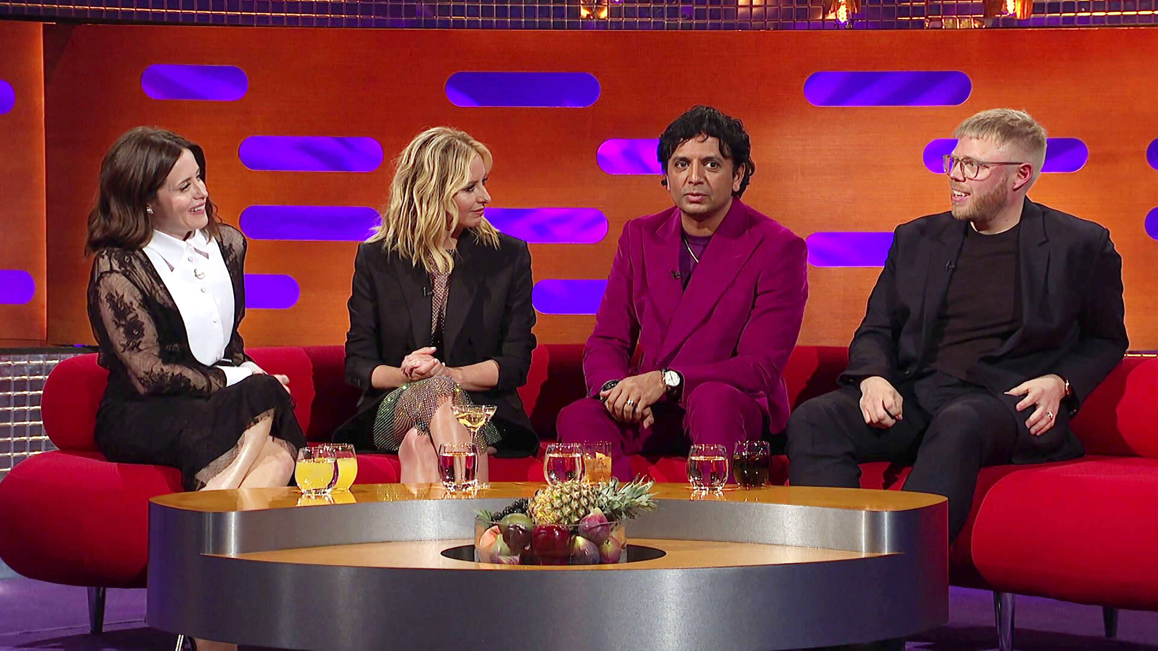 Claire Foy, Sarah Michelle Gellar, M Night Shyamalan, Rob Beckett og Sam Smith Graham besøger Graham og den røde sofa.