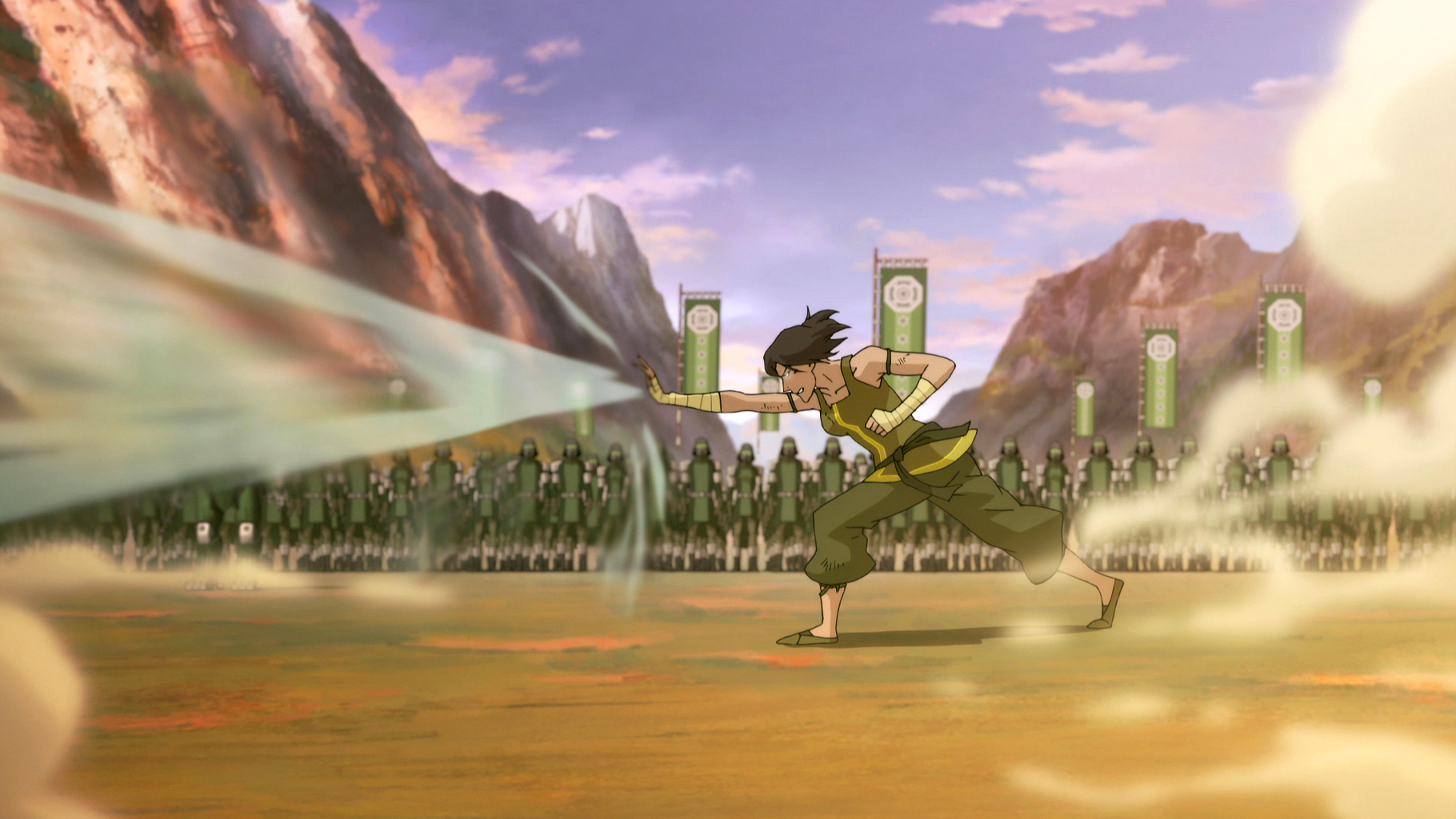 Team Avatar kolliderer med Kuvira. Pema og prins Wu evakuerer Republikken borgere