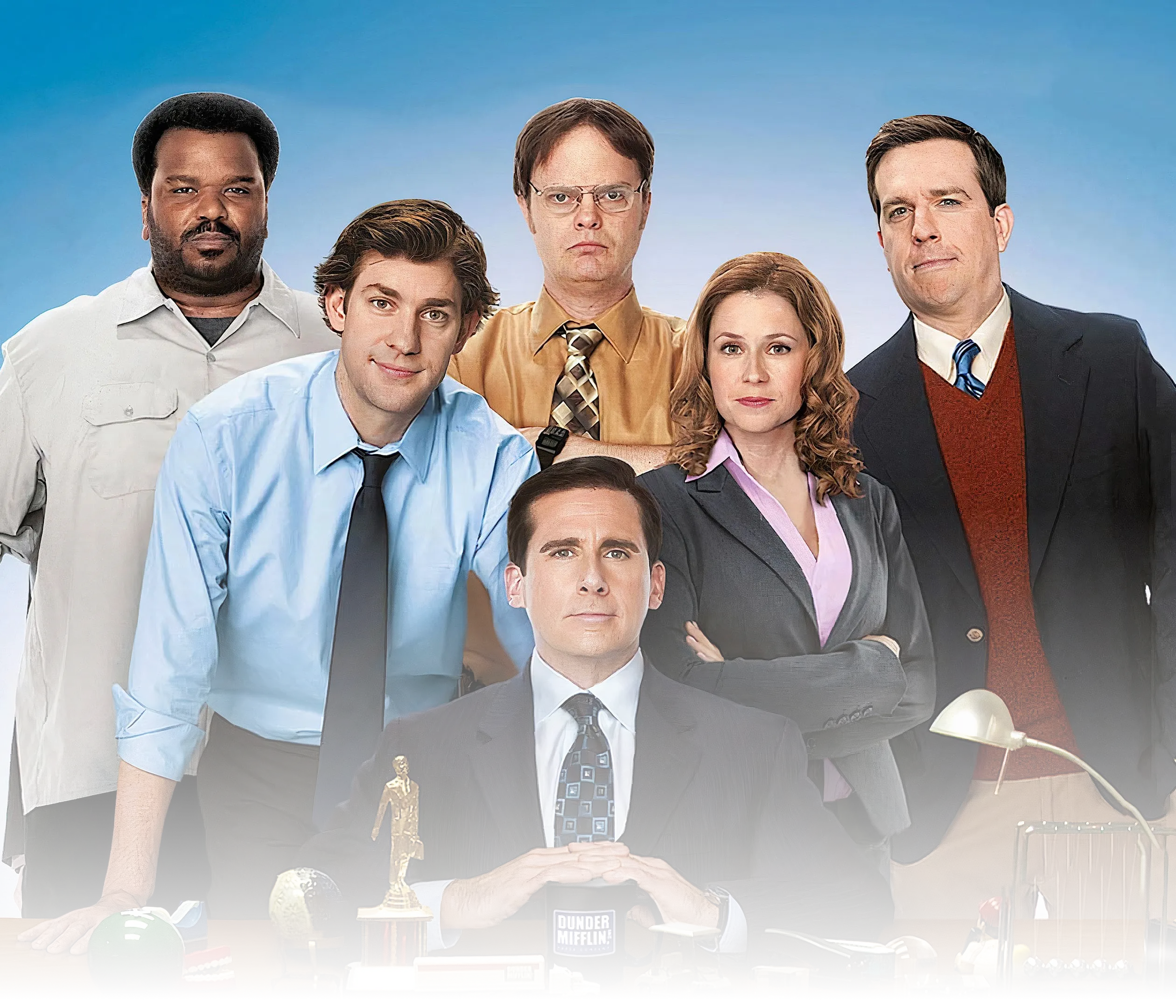 Blandt de andre nøglefigurer i serien finder vi Jim Halpert (John Krasinski), den karismatiske og sjove sælger, der konstant driller sin nørdede kollega Dwight Schrute (Rainn Wilson). Der er også Pam Beesly (Jenna Fischer), den søde receptionist, som Jim har et godt øje til. Og selvfølgelig alle de andre ansatte som blandt andet Phyllis Vance (Phyllis Smith), Andy Bernard (Ed Helms) og Angela Martin (Angela Kinsey).
