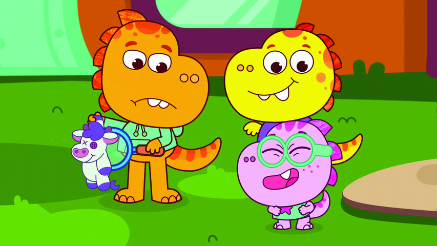 T-Rex Tim, hans storebror Tommy, hans lillesøster Tia og deres bedste ven, triceratopsen Kai, tackler børneproblemer med dinosaurstore løsninger - i rummet.