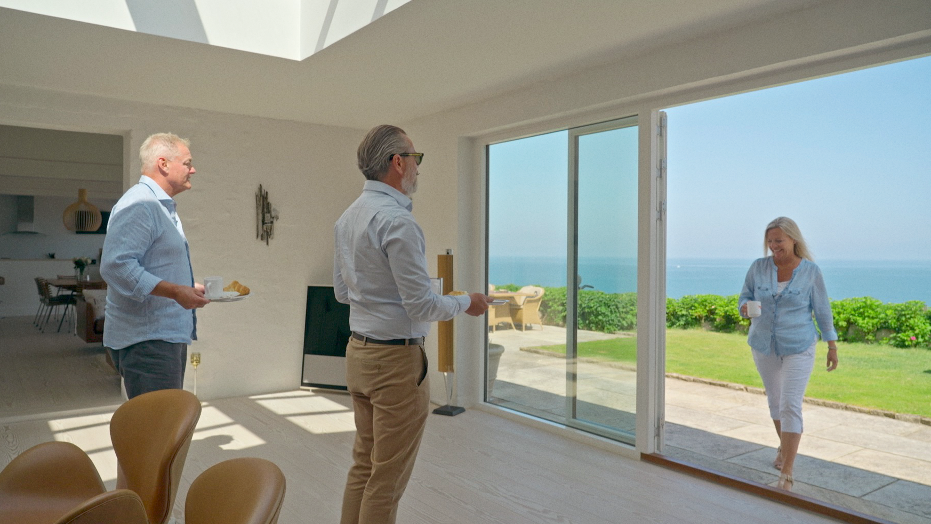 Jette Gudiksen besøger sælgeren af en moderne bobåd, Lars Elbæk holder statusmøde med sælgerne af en smuk villa, og Adam Schnack lykønsker nye sommerhusejere.