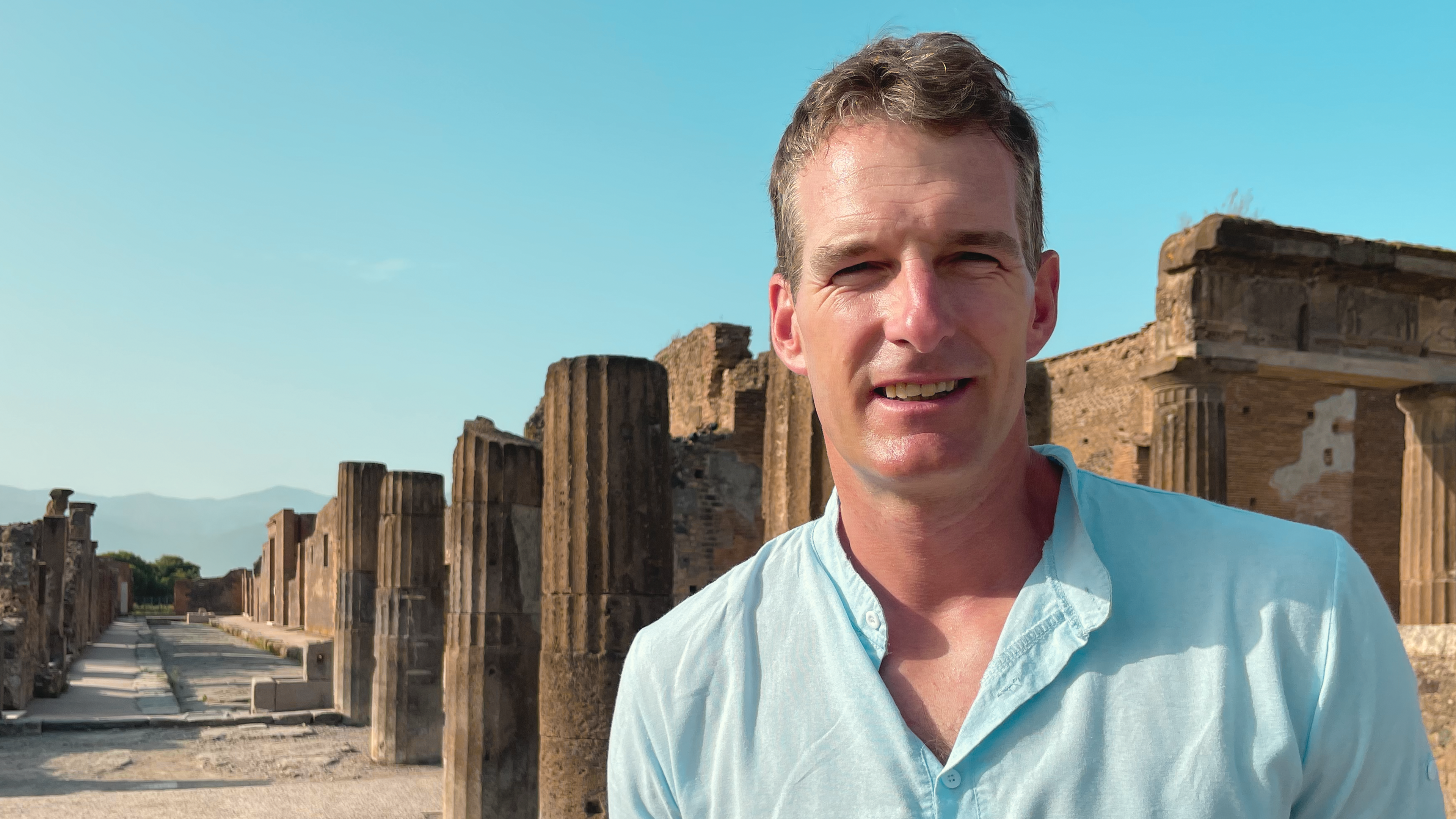 Dan Snow tager denne gang til Pompeii, der blev begravet under et langvarigt udbrud af vulkanen Vesuv i år 79, og hvor omkring 2000 indbyggere døde.