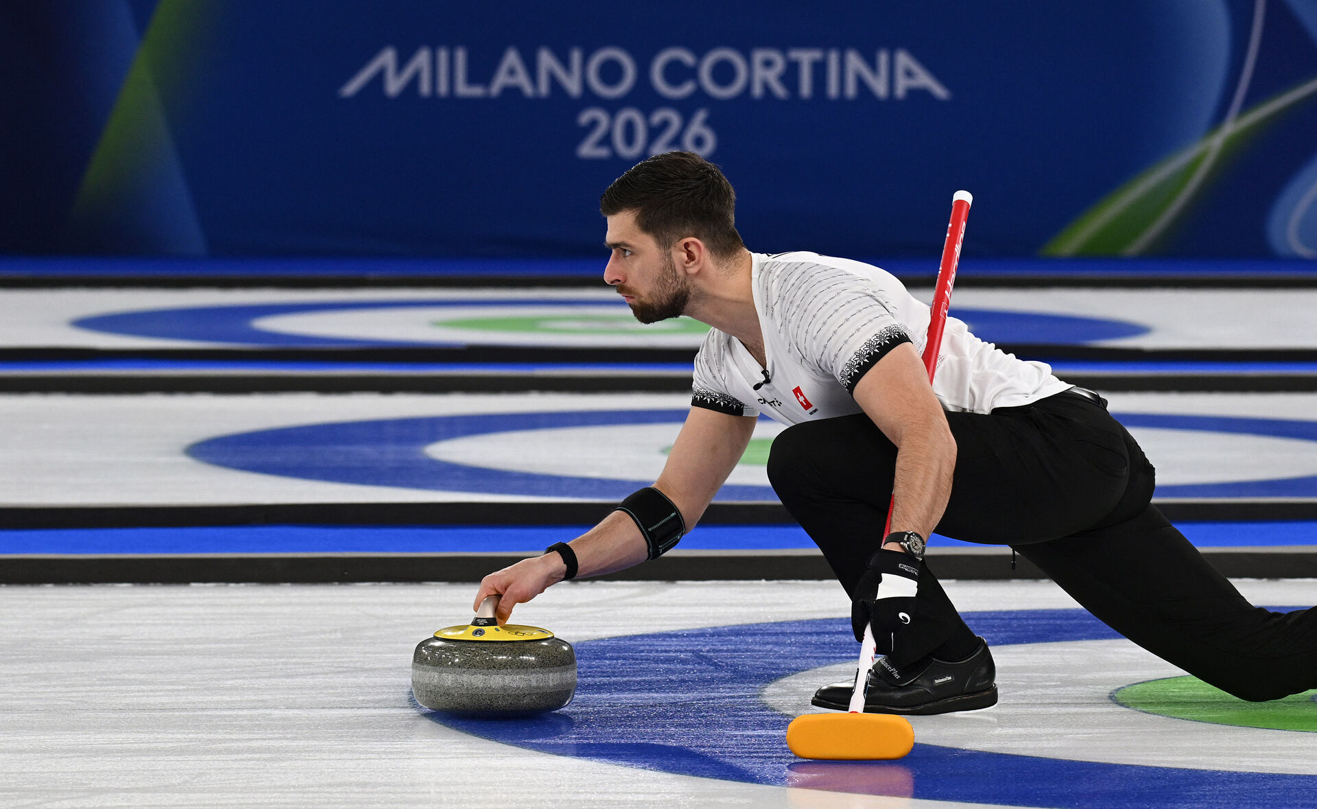 Der skal sigtes, skubbes og fejes, når stenene skal fordeles rundt på isen i curling. Følg med i curling til vinter-OL her..
