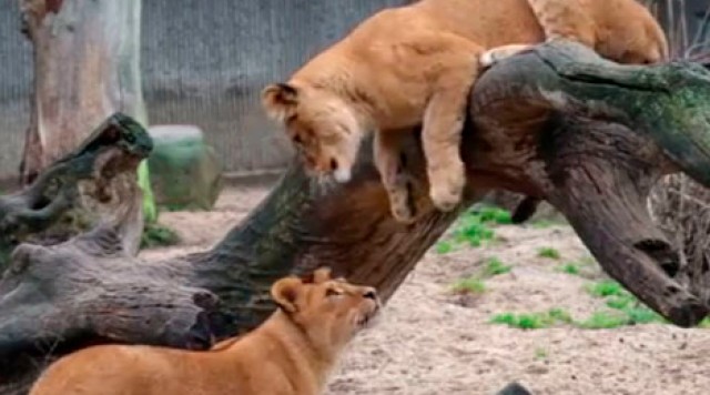 Kan du se, hvad løverne i Københavns Zoologiske Have laver?.