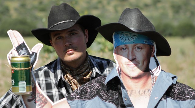 Deltagerne får en seksløber i hånden og skal skyde til måls efter baked beans, bajere og kunstige geder. Sandra og Jan får lov at bruge en shotgun.
